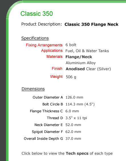 C35D - Classic 350 CF350- Classic 350 Flange CFN350 - Classic 350 Flange neck Z2L - Classic Locking Insert